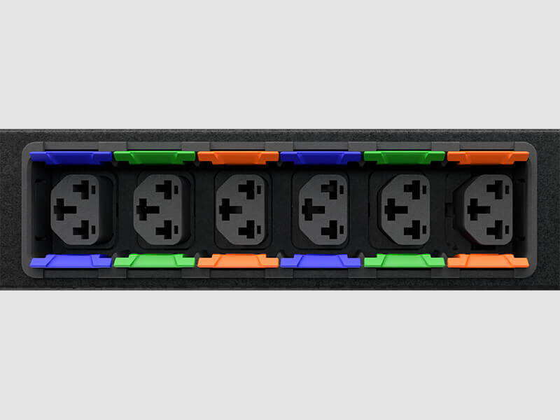 In addition to C14 or C20 plugs fitting in any receptacle on the rack PDU, the receptacles are color-coded to allow customers to easily differentiate by circuit. These high-retention receptacles are designed to work with cords provided by equipment manufacturers, ensuring plugs stay in place.