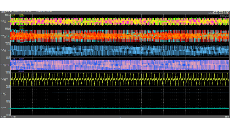 The tests included monitoring and analysis of key UPS parameters: input and output voltage, current, frequency, and DC bus behavior. Special attention was given to the UPS’s response to the rapid transitions between compute and idle phases, as seen during AI training and inference cycles.