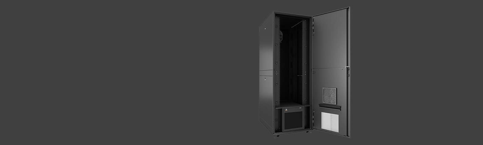 The integrated, rack-mounted cooling unit in the Vertiv VRC-S is designed specifically for today’s IT loads, and unlike building air conditioning, it does not remove moisture. It delivers 3.5 kW of cooling in a highly efficient closed system that directs cool air to the front of the IT equipment and ejects hot air out the back of the unit and out of the building. The unit’s integrated monitoring system includes sensors at the front and top of the rack that trigger alerts and activate the backup fan for emergency airflow in case of power outages.
