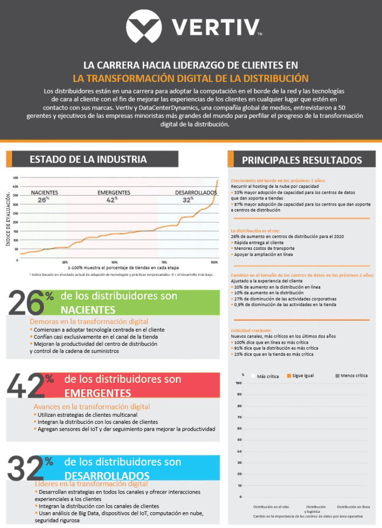 DESCARGAR EL INFORME COMPLETOCasi el 90% de los distribuidores de la lista Fortune 500 recurren a Vertiv para proteger las tecnologías que impulsan las experiencias de sus clientes. Descubra cómo podemos ayudarlo. |