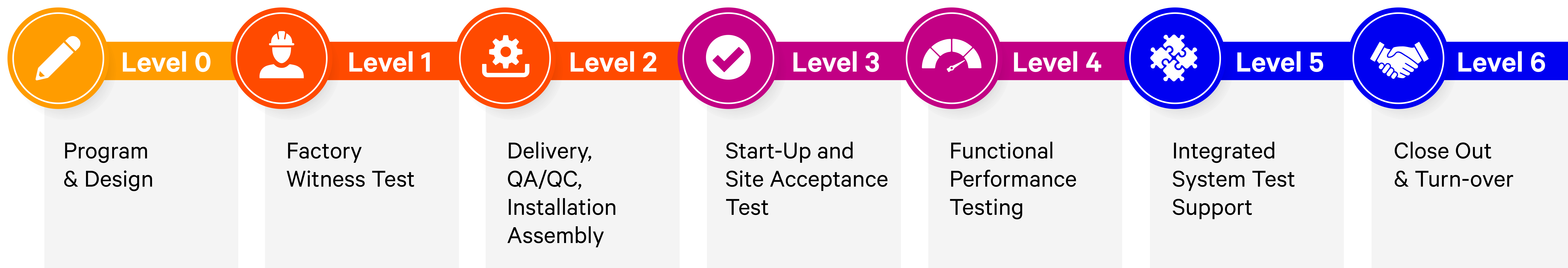 プロジェクトのライフサイクルを簡単にナビゲートできます。試運転レベル L1 から L5 まで、当社のプロジェクトマネージャーは、液体冷却システムの実装を成功させるためのあらゆるステップでお客様をサポートします。